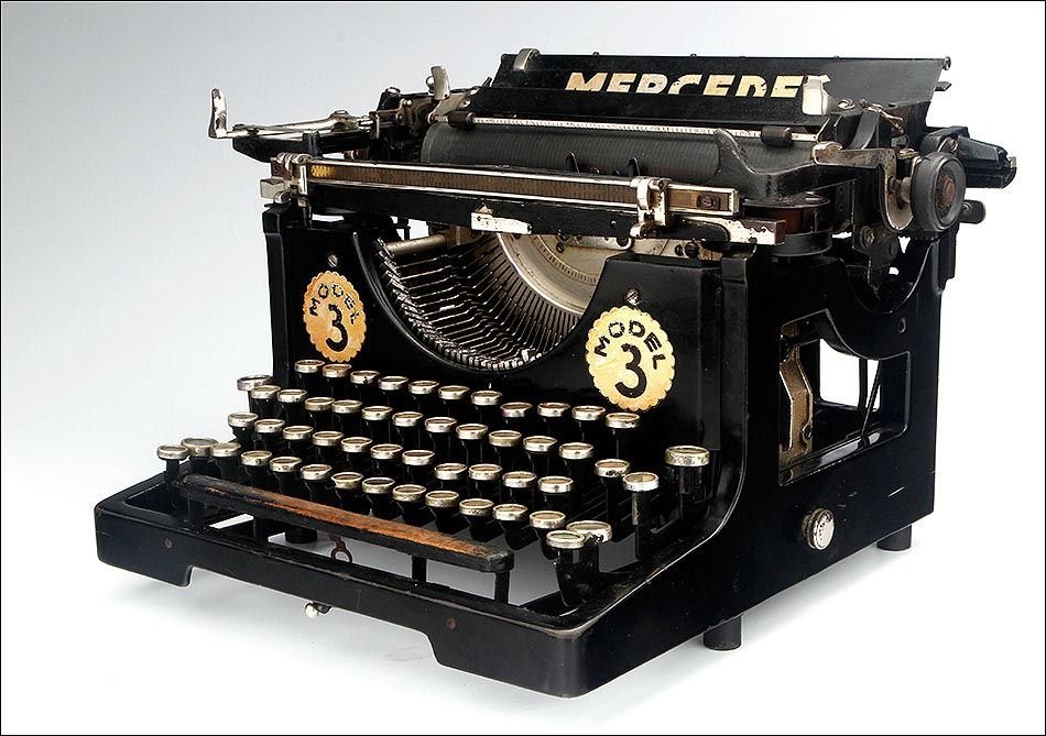 La hermosa máquina de escribir que aparece en las fotografías es una Mercedes modelo 3, fabricada en Alemania para el mercado español en los años 20 del siglo XX. El teclado lleva la letra Ñ. Se trata de una pieza antigua, con alrededor de 90 años de historia a sus espaldas y en buen estado de conservación. La máquina ha sido revisada y limpiada a fondo, y puede utilizarse para mecanografiar documentos sin problemas.